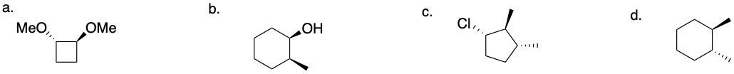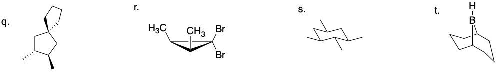 64.03.1 Determine if each compound below possesses an internal mirror plane plan or lacks an internal mirror plane. If there is a plane, sketch it on the molecule.